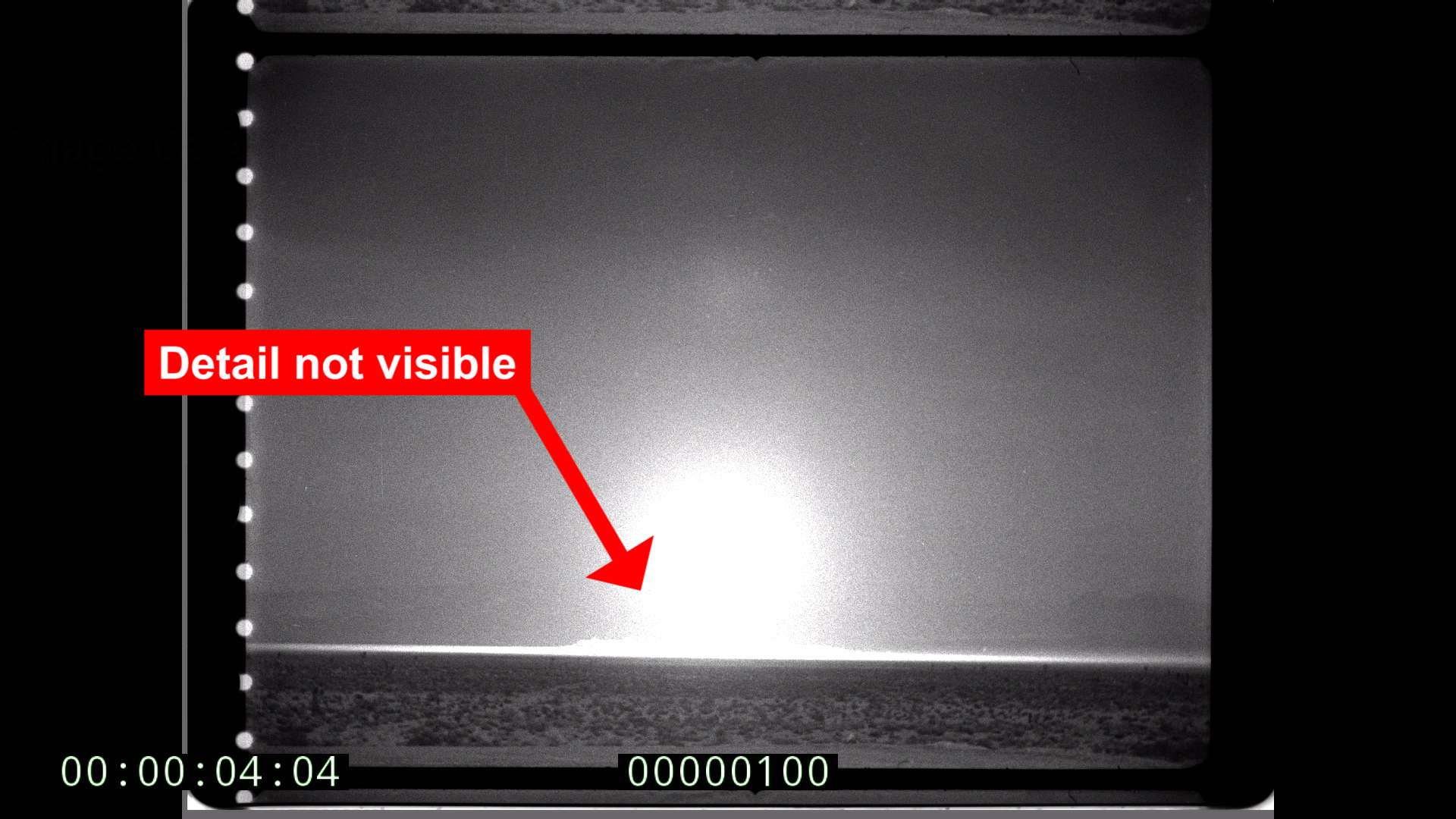 Below are scan comparisons between the ARRISCAN, the dft Scanity, and the ScanStation from the same print film using 2-flash scanning. Images have been digitally brightened 1,000 times to reveal detail in the shadow (i.e. high density) regions. Notice the vertical artifacts, excessive noise, and loss of detail in the ARRISCAN and dft images.