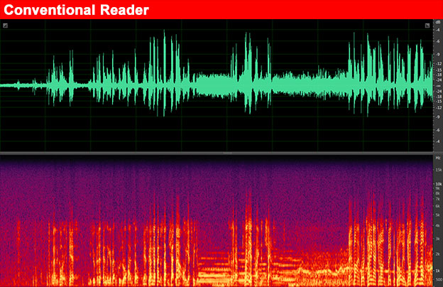 - Noise reduction processing reduces noise dramatically compared to conventional slit-based readers